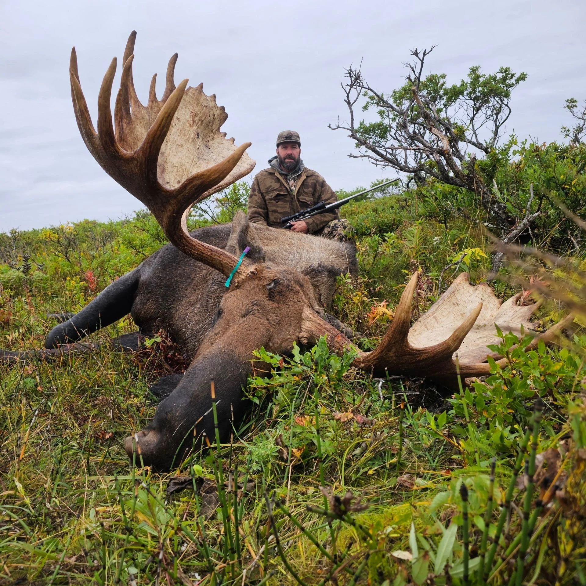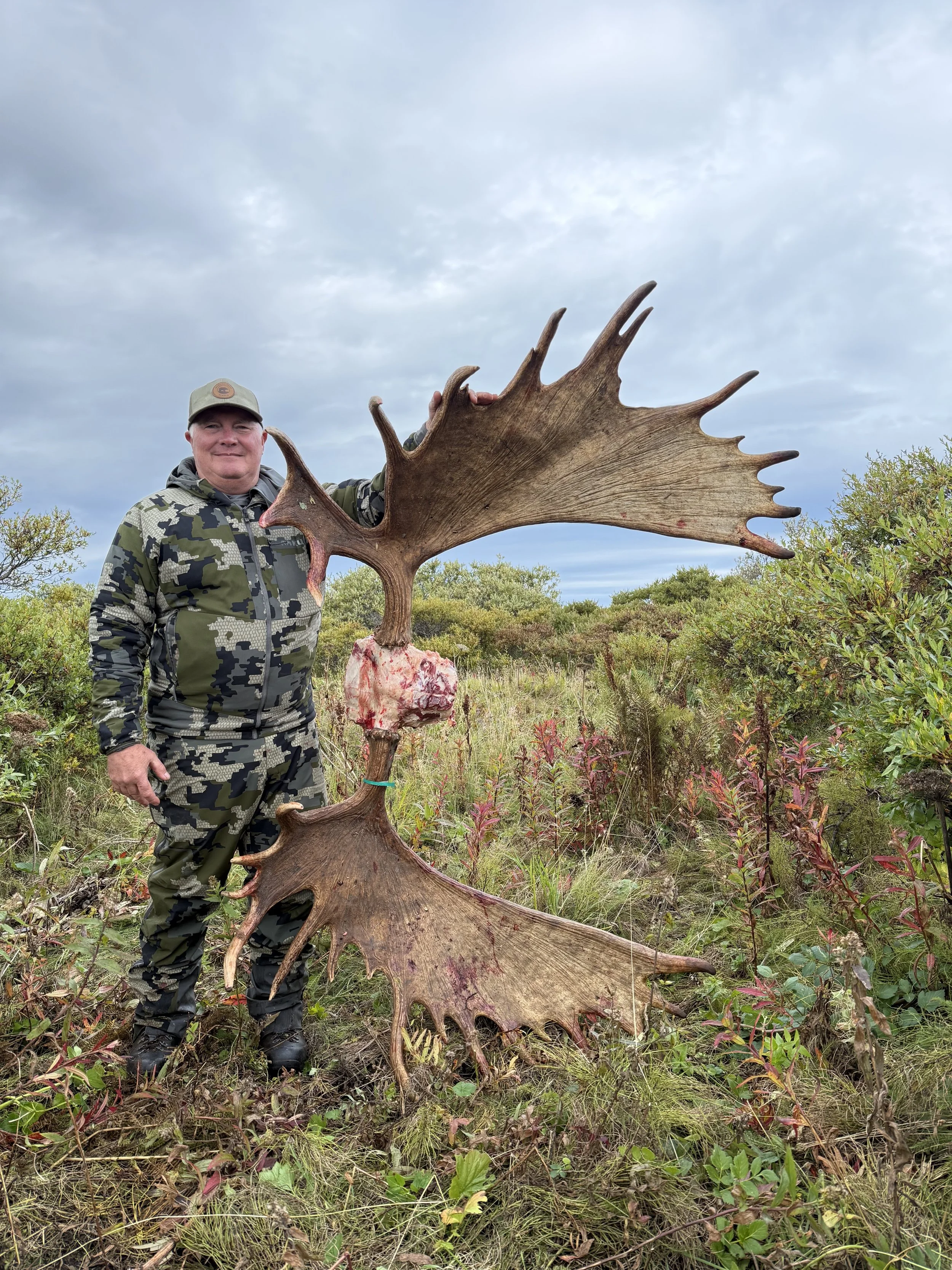Moose hunting is done in some of the brushier terrain in our hunting areas, where they feed on willows and begin to gather their cows for the rutting season in mid-September. The Alaska Peninsula moose population is on the rise, providing an excellent opportunity for hunters looking for a trophy moose. Hunting is done on foot from comfortable spike camps. We are targeting trophy moose above the 60″ antler spread.